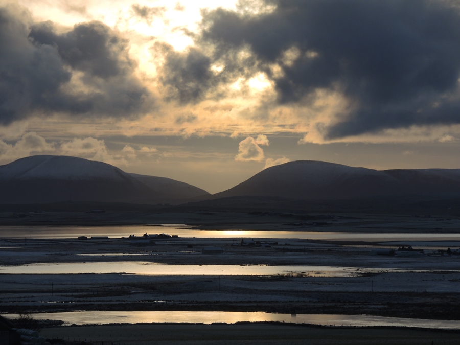 On Boxing Day we walked up to the trig on Birsay Moor. The hail let rip a few times and the path was tricky. The hound had a lovely time.